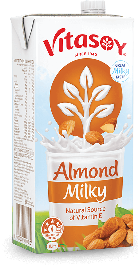 Vitasoy Almond Milk Unsweetened is made from Australian grown whole almonds. It has 98% less sugar and 60% less calories than reduced fat dairy milk~. Better still, when enjoyed as part of a balanced diet, it’s brimming with the goodness of calcium for strong bones^ and is a natural source of vitamin E+.