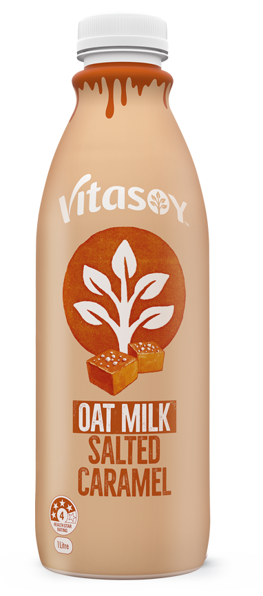 For a sweet and satisfying treat, Vitasoy Oat Milk Salted Caramel pairs smooth Australian oats with a decadent salted caramel flavour for easy everyday indulgence.